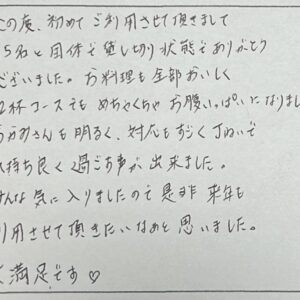 お客様の声 15名様の貸し切りのお客様よりお声をいただきました 2025.12.31 お客様の声 15名様の貸し切りのお客様よりお声をいただきました お客様の声 | 2025.12.31 連れてきてくれたじーちゃんに感謝! 2025.12.07 お客様の声 連れてきてくれたじーちゃんに感謝! お客様の声 | 2025.12.07 毎年仲の良い仲間と訪れています 2025.12.07 お客様の声 毎年仲の良い仲間と訪れています お客様の声 | 2025.12.07 思いがとても伝わりました 2025.12.07 お客様の声 思いがとても伝わりました お客様の声 | 2025.12.07 思ってた民宿のイメージとちがってとてもよかった 2025.12.05 お客様の声 思ってた民宿のイメージとちがってとてもよかった お客様の声 | 2025.12.05 色々な種類の調理方法で頂けて幸せでした 2025.11.21 お客様の声 色々な種類の調理方法で頂けて幸せでした お客様の声 | 2025.11.21 おかみさんは気さくな方 2025.09.28 お客様の声 おかみさんは気さくな方 お客様の声 | 2025.09.28 たくさんの「いい」を頂きました 2025.09.28 お客様の声 たくさんの「いい」を頂きました お客様の声 | 2025.09.28 朝のかまどご飯が絶品でした 2025.09.28 お客様の声 朝のかまどご飯が絶品でした お客様の声 | 2025.09.28 「カニをお好きな料理」に惹かれ利用させて頂きました 2025.09.28 お客様の声 「カニをお好きな料理」に惹かれ利用させて頂きました お客様の声 | 2025.09.28 おちつくお部屋でした 2025.09.28 お客様の声 おちつくお部屋でした お客様の声 | 2025.09.28 カニ天ぷらが好きな息子達も大満足 2025.09.28 お客様の声 カニ天ぷらが好きな息子達も大満足 お客様の声 | 2025.09.28 他には無いサービスだと思います 2025.09.28 お客様の声 他には無いサービスだと思います お客様の声 | 2025.09.28